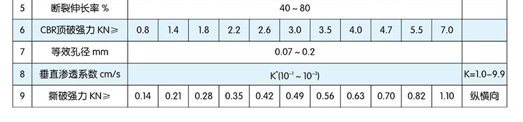 滲透性及平面排水性:長絲土工布較厚且是針刺成型的,具有良好的平面排水和垂直透水性,多年后仍能保持此性能;